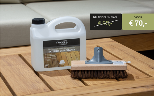 Onze tuinmeubelen worden standaard voorzien van een beschermende laag van Woca Exterior Oli Naturel. Deze olie beschermt jouw meubelen tegen vocht en UV straling. Afhankelijk van de weersomstandigheden raden wij aan om je meubel elk jaar te beoordelen met oog op een extra behandeling. De olie is eenvoudig in gebruik en onderhoud.